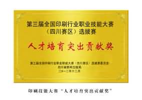 2012年獲得第三屆全國印刷行業(yè)職業(yè)職能大賽(四川賽區(qū))選拔賽人才培育突出貢獻(xiàn)獎(jiǎng)